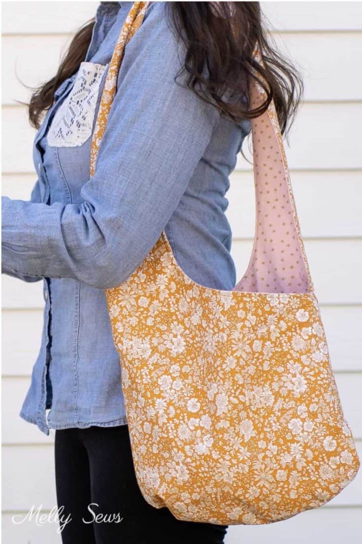 No tricky fasteners on this bag! This is a great beginner bag pattern because it's simple to sew, but also very useful! It would be so cute to hold small sewing projects or knitting projects. Find the tutorial at Melly Sews.